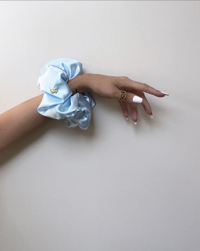 Secure elastic for desired tying. Gold butterfly embellishment.