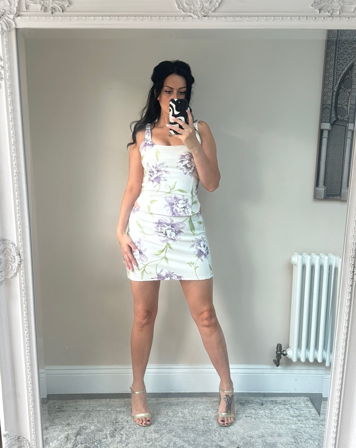 Gold VL butterfly to rear of skirt.