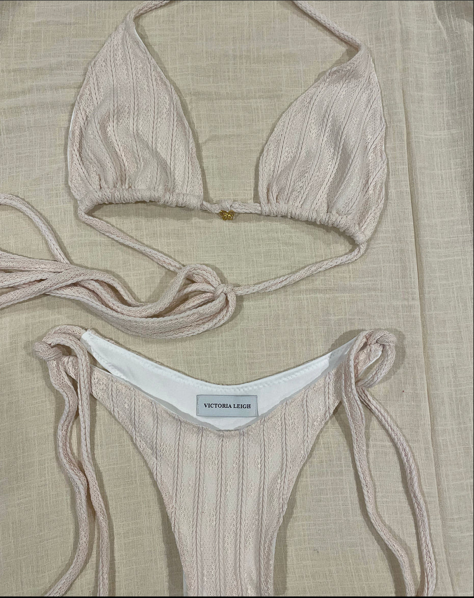 Cable knit bikini set.