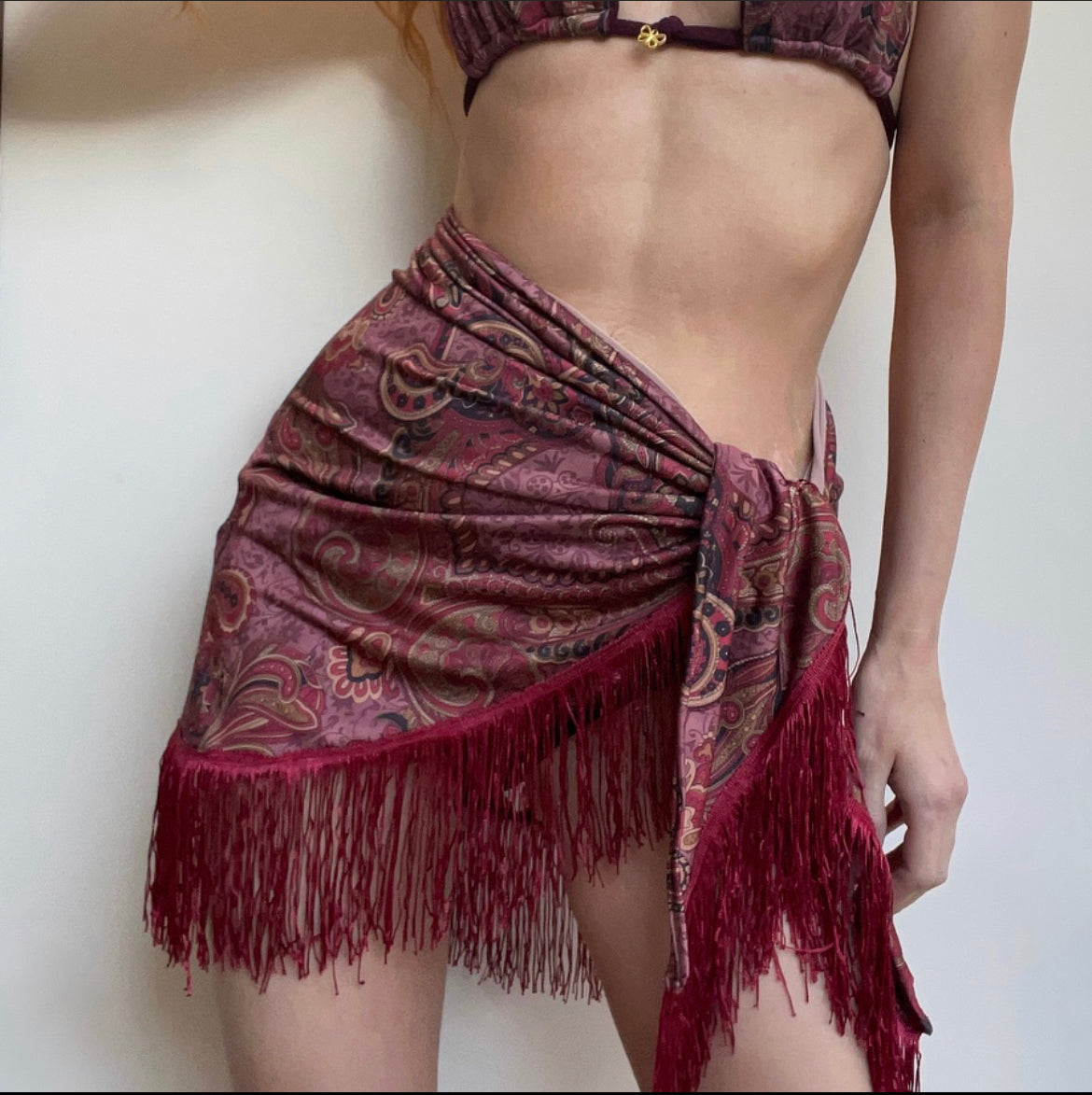 The Calypso tassel sarong is a limited paisley print sarong with tassel trim detail. Matches perfectly with the Calypso Bikini.
