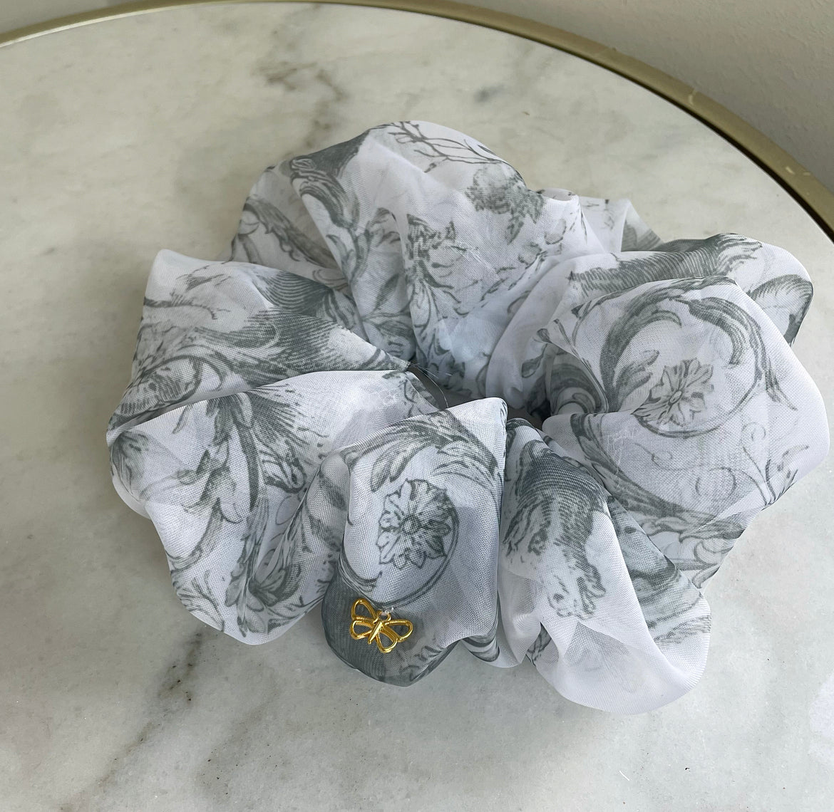 Made to order. Secure elastic for desired tying. Gold butterfly embellishment.