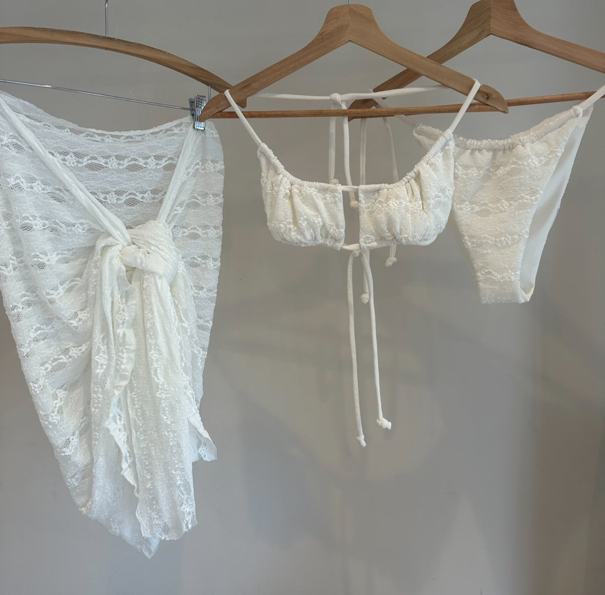 Double layered bikini with single layer lace sarong.