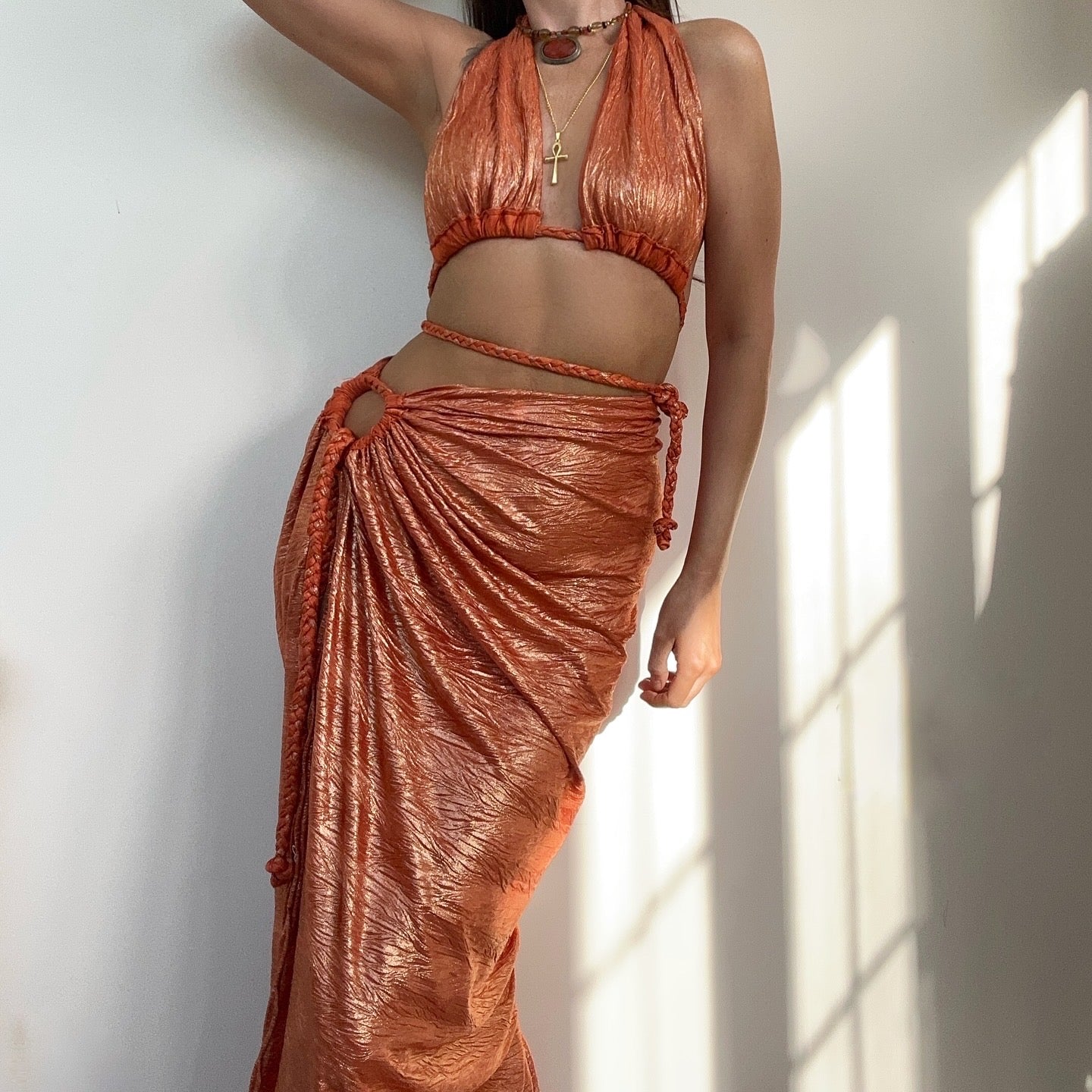 Made to order. Comes with the VL gold butterfly embellishment on plaited tie.