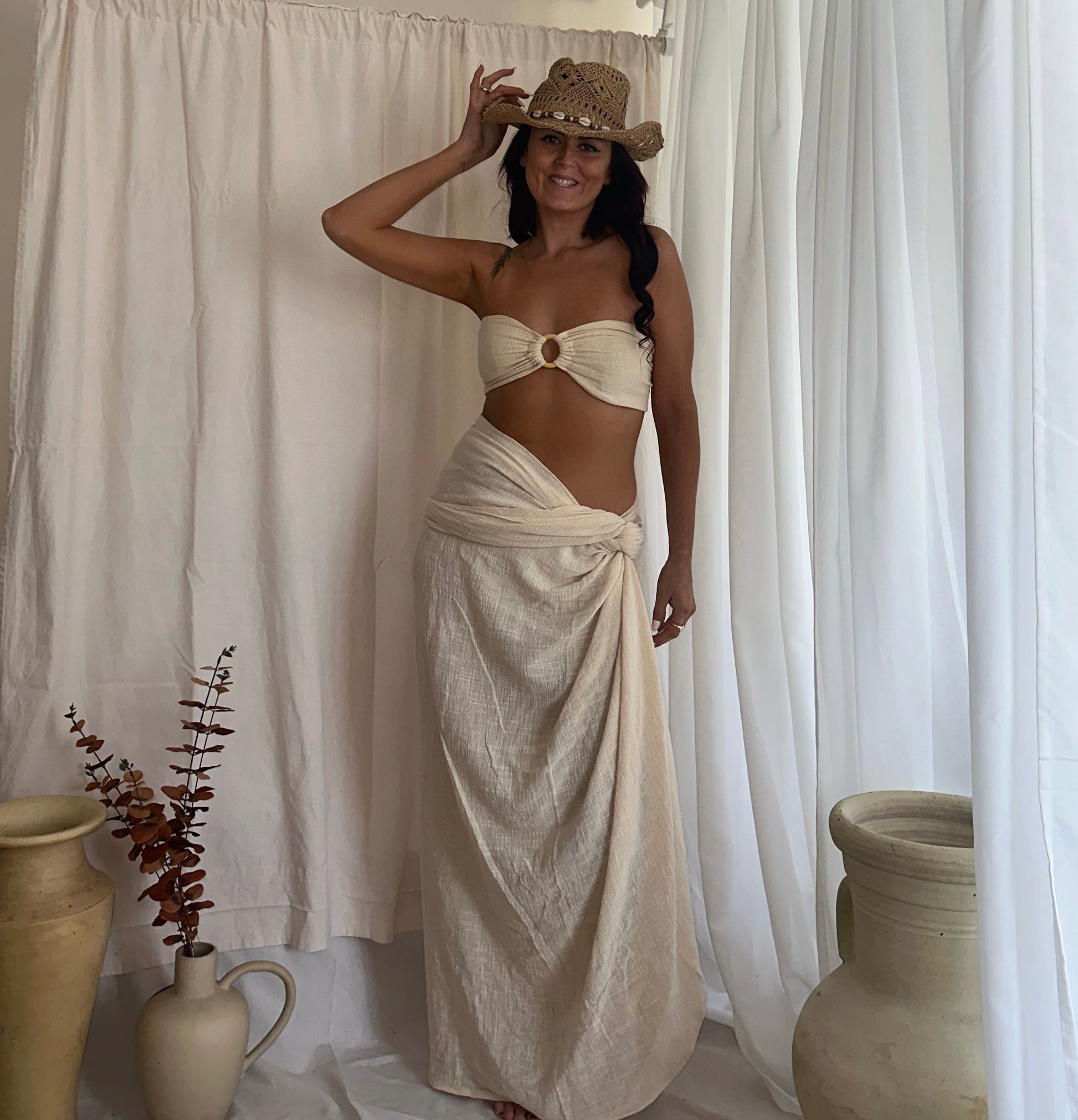 MODEL WEARS: • Beige Cotton linen. • Size UK8 Please check refund policy before placing any orders at Victoria Leigh.