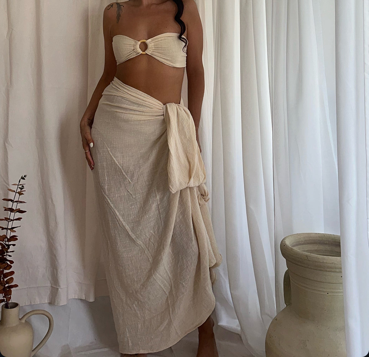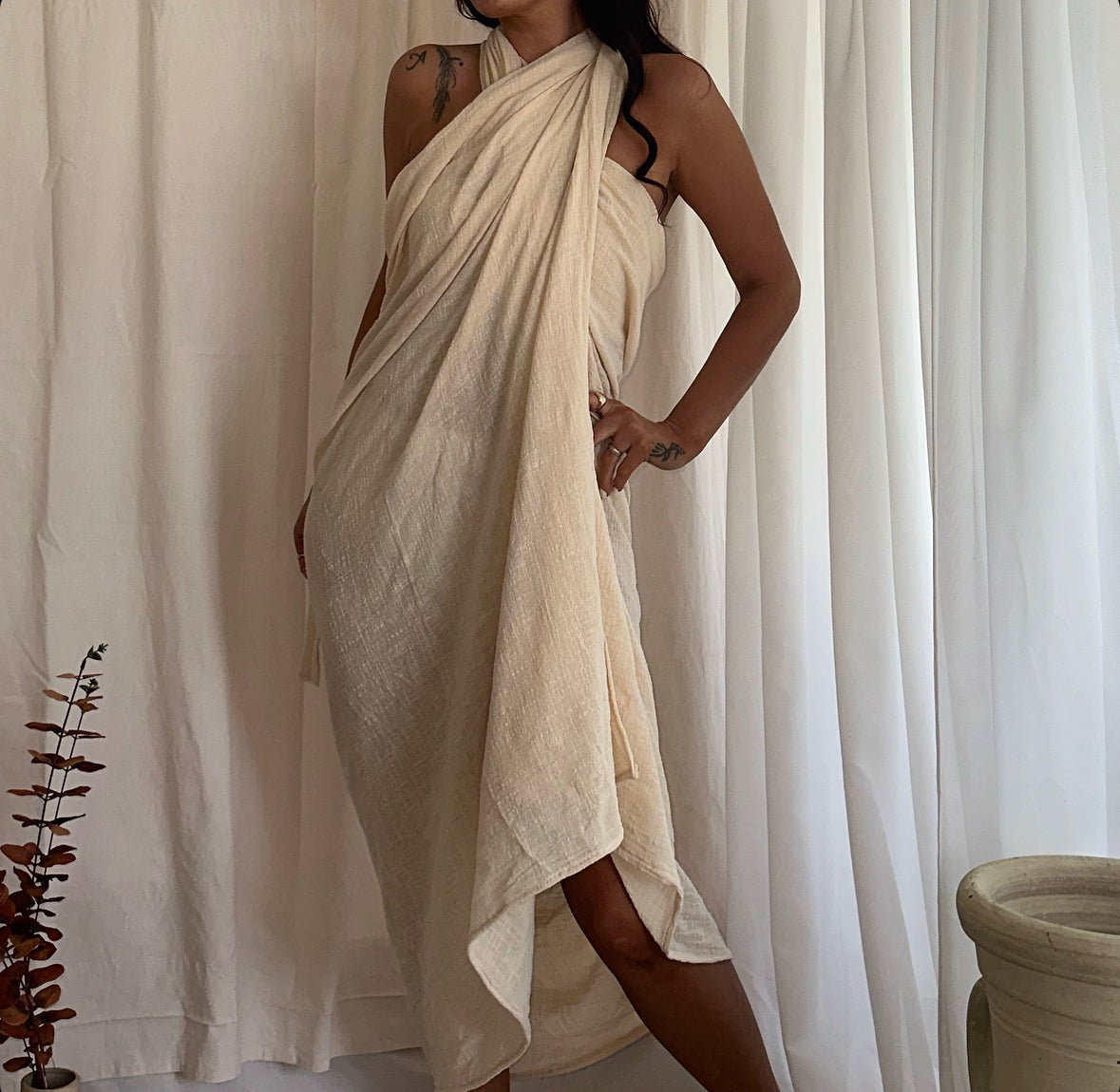 Linen is a gorgeous natural fabric. It is super comfortable to wear during warm weather months or year-round in temperate climates. The fibres have properties that wick moisture away from your body, which gives the fabric its characteristically cool, airy feeling. Cooling in the hotter weather and easy to layer in cooler months.