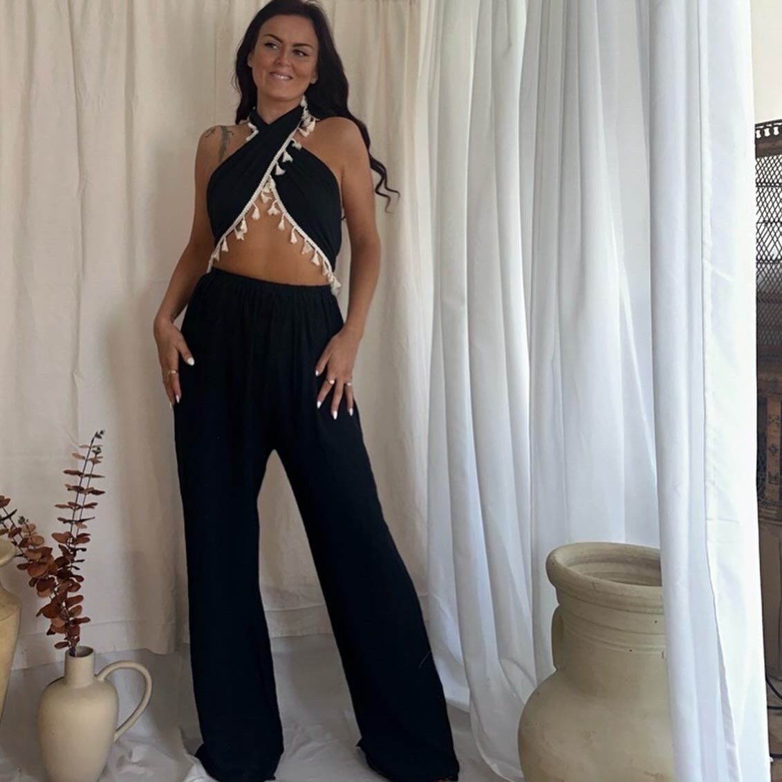 MODEL WEARS: Black linen. • Size UK8 Please check refund policy before placing any orders at Victoria Leigh.