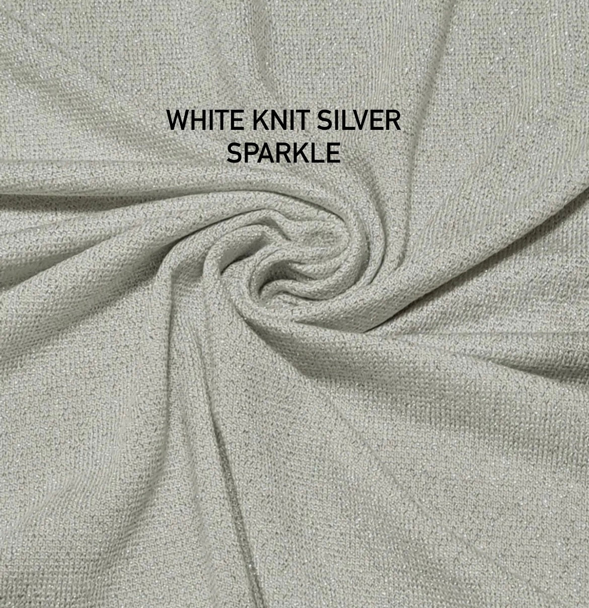 SIZING: Model Measures: height 5”9, Waist 29.5”, Bust 34B. Model Wears: Size 10. ‘white knit silver sparkle