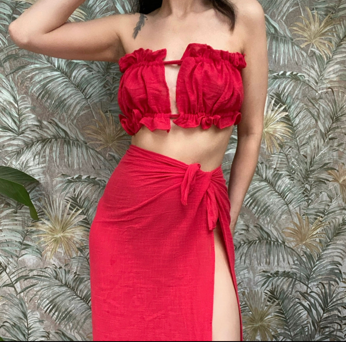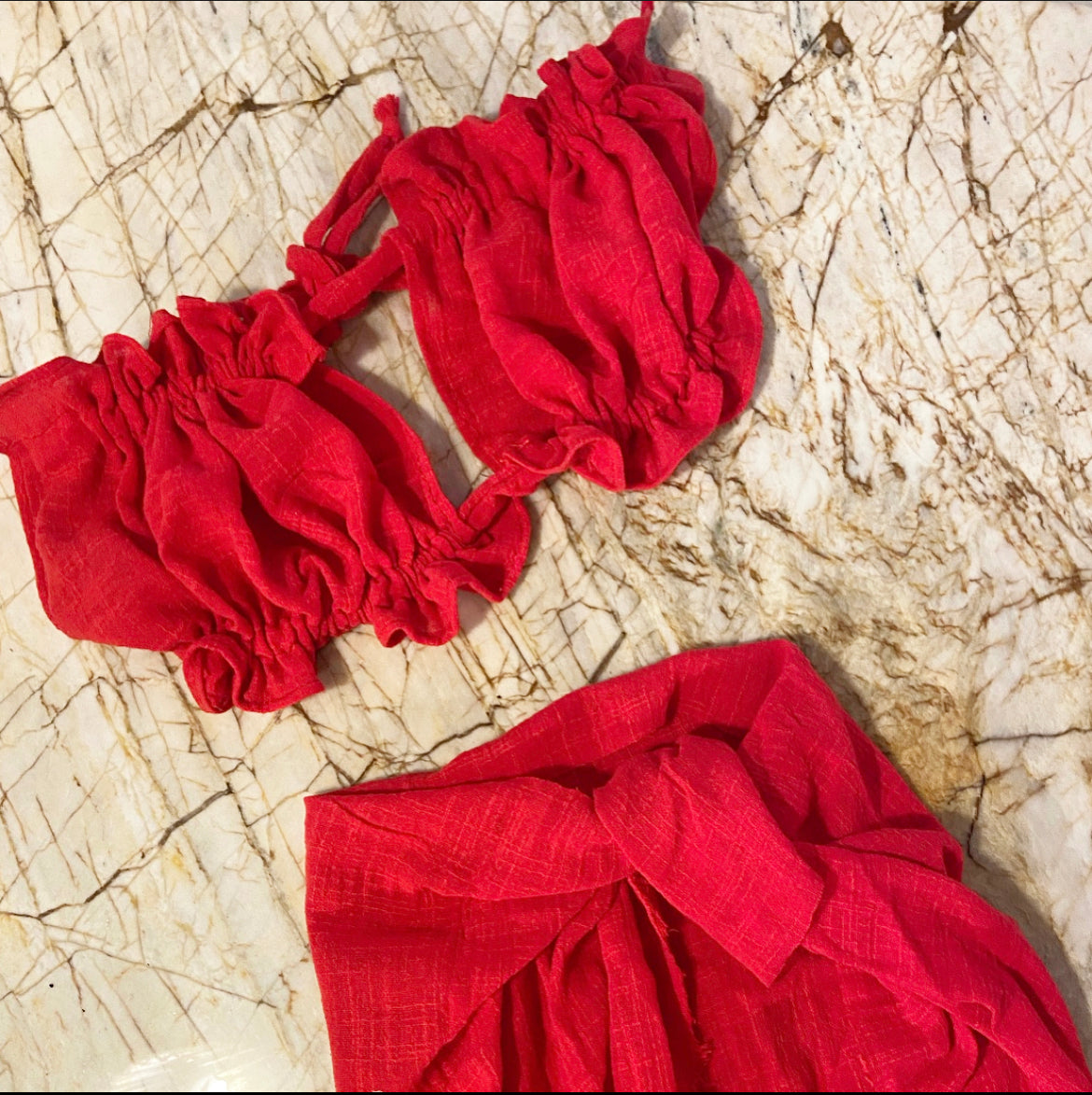 DELIVERY: Please check turnaround times. MODEL WEARS: • Red Cotton linen. • Size UK8 Please check refund policy before placing any orders at Victoria Leigh.