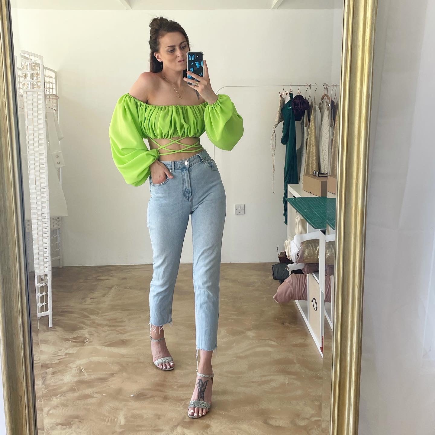 MODEL WEARS: LIME POLYESTER . • Size UK10