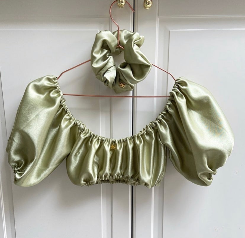 Elasticated Off The Shoulder Crop Top with optional matching scrunchie
