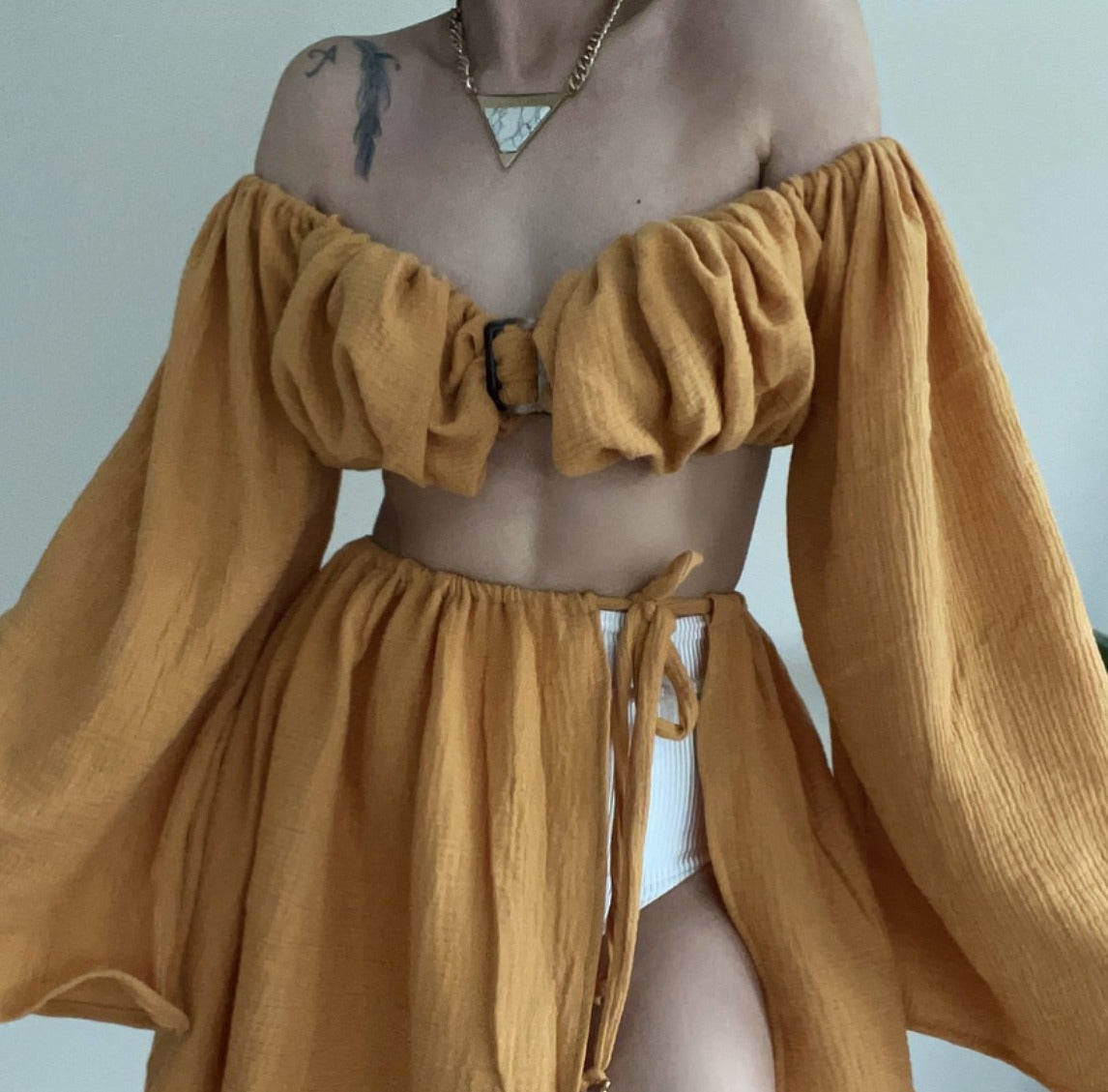 A beautiful crop top that matches perfectly with the Maya Sarong Skirt.