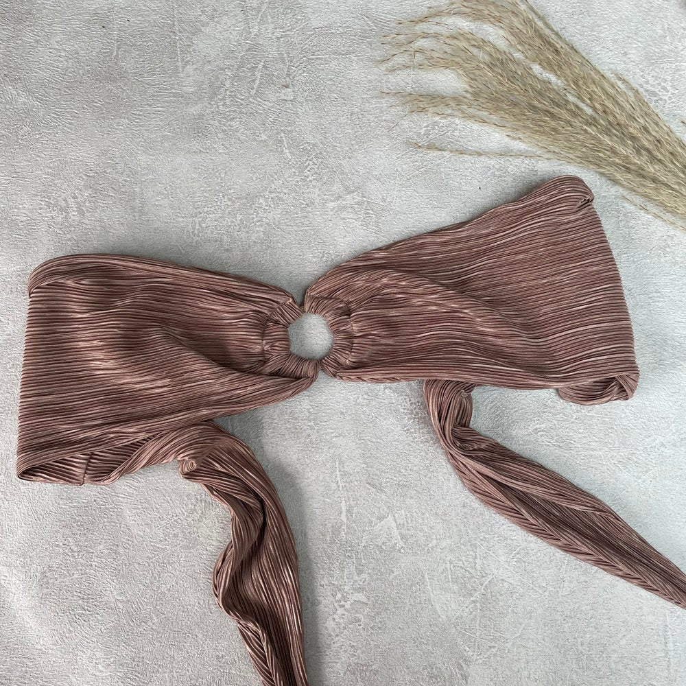 Hand wash all Victoria Leigh Swim pieces. Fabric pictured: Brown crinkle.