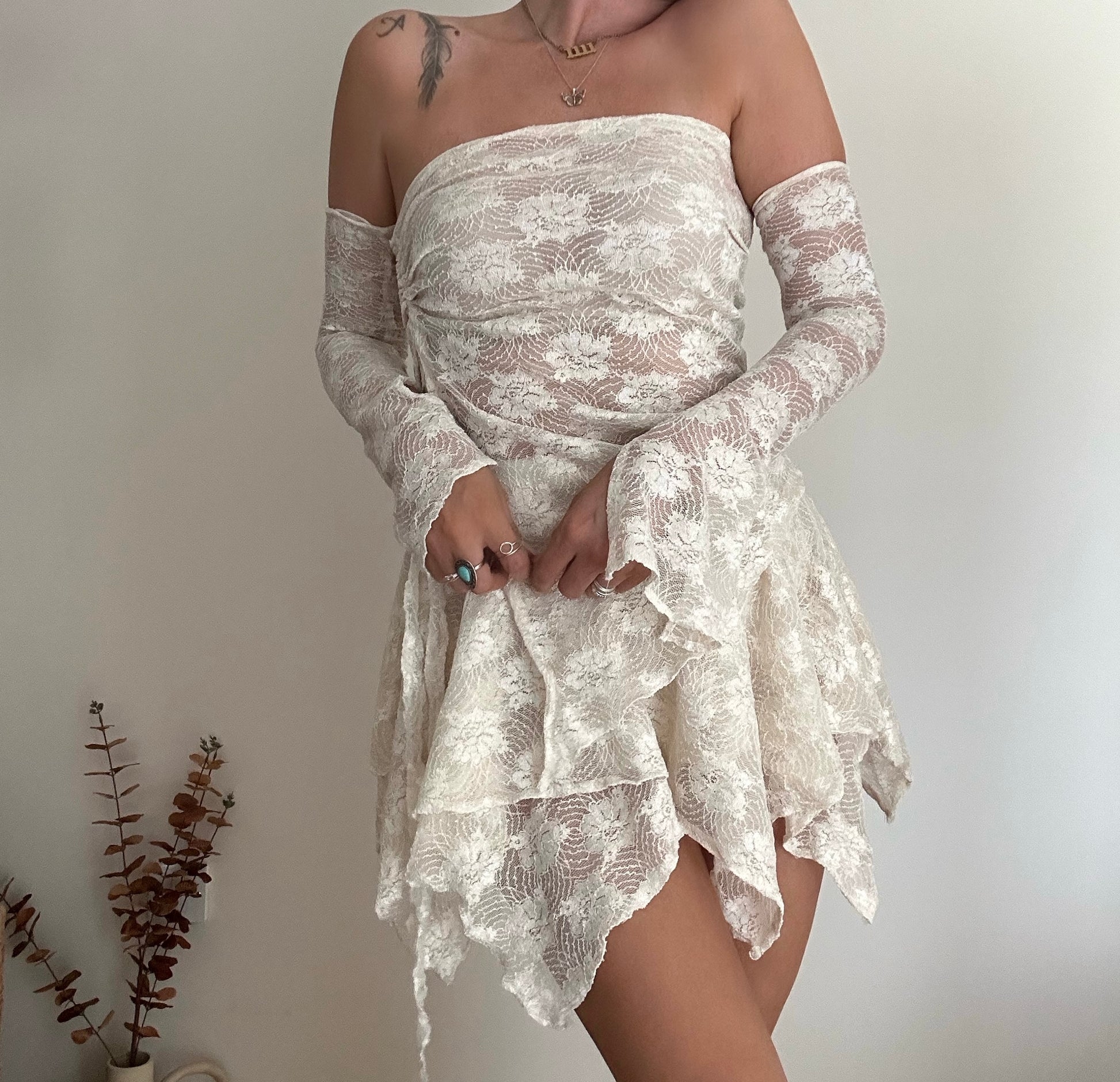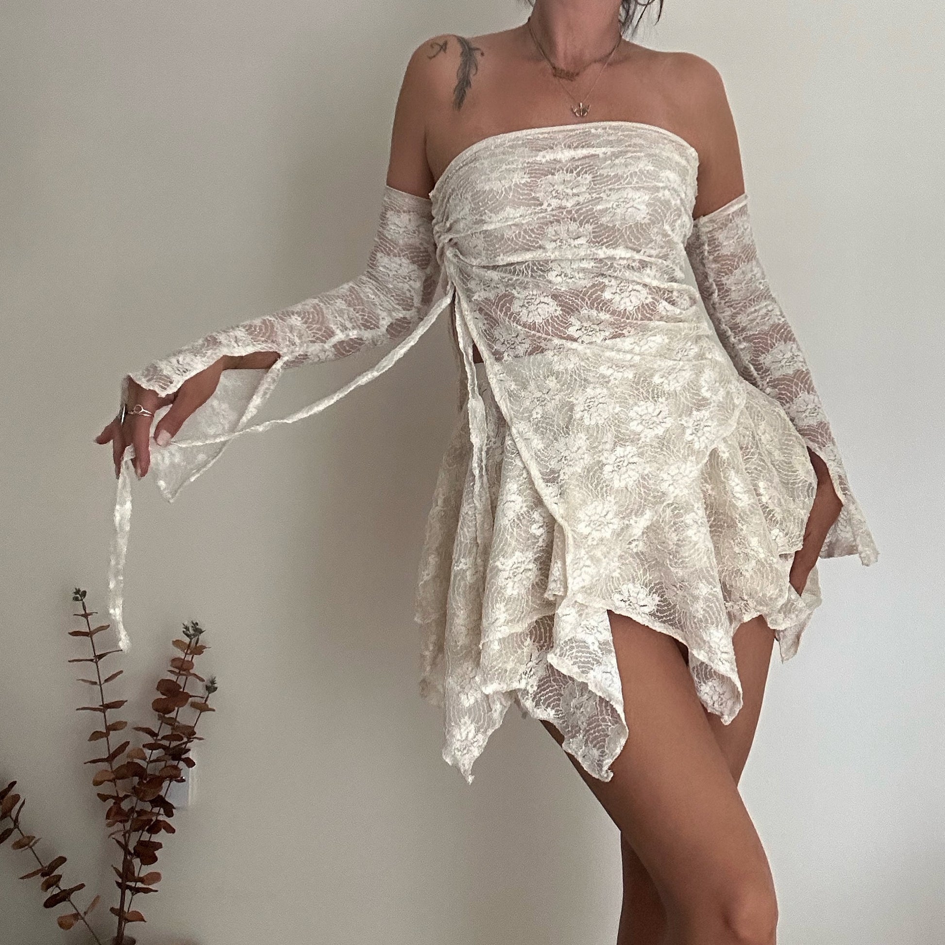 Created in the new champagne Rose Lace. Single layered lace.