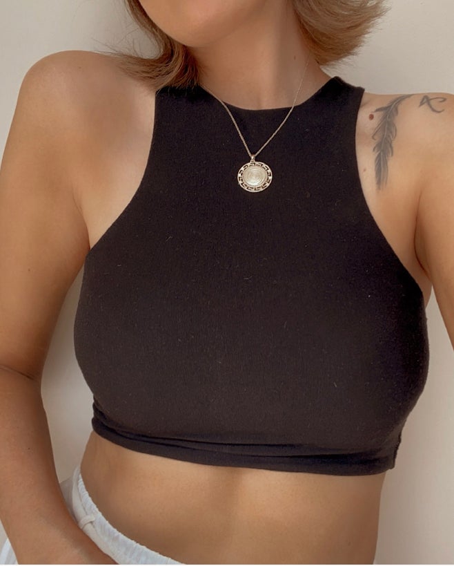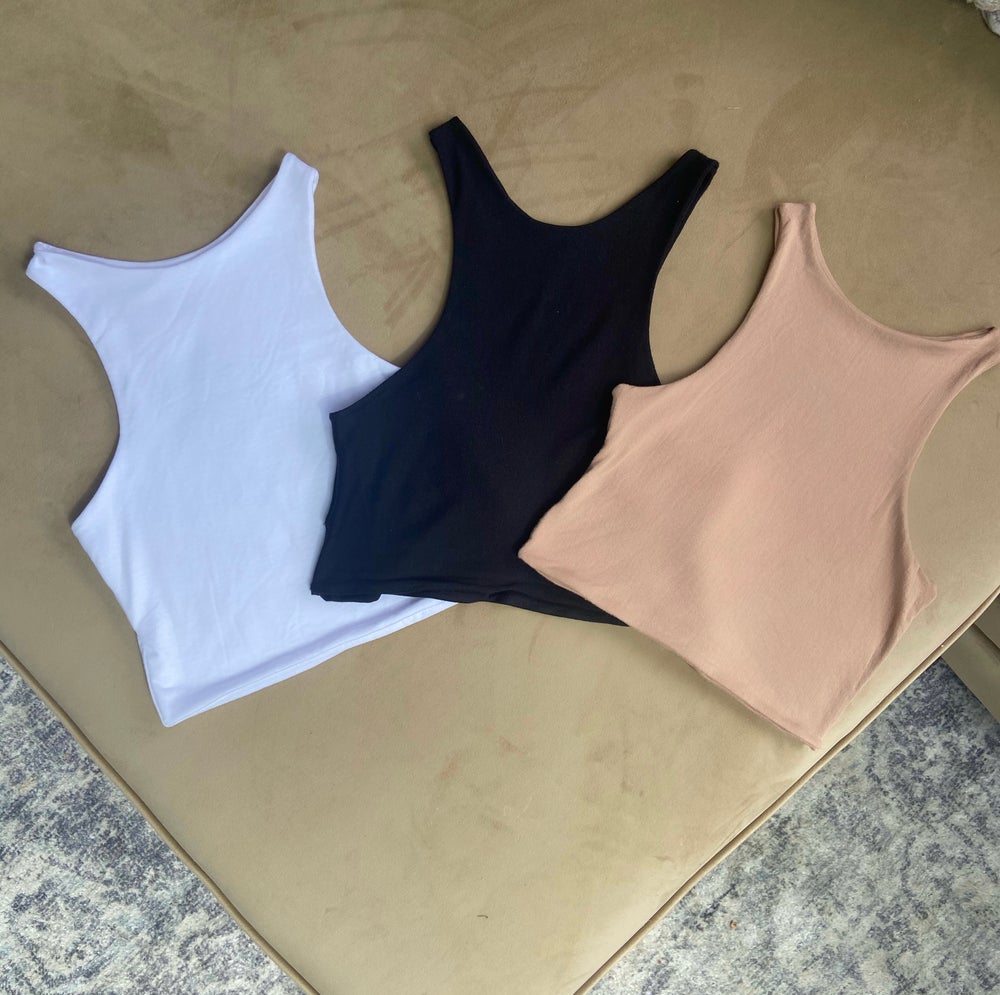 Soft Stretch racer style crop top. Double layered fabric for a luxury feel.