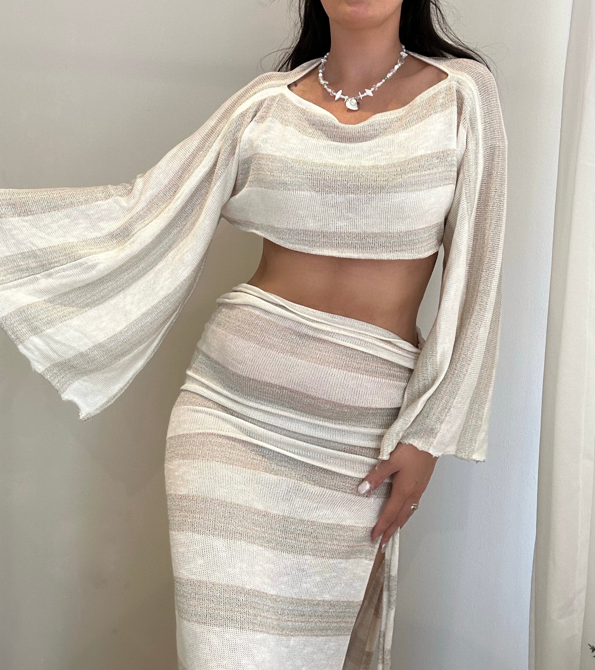 lightweight stretch summer knit. Created in the new ‘golden hour’ knit fabric.