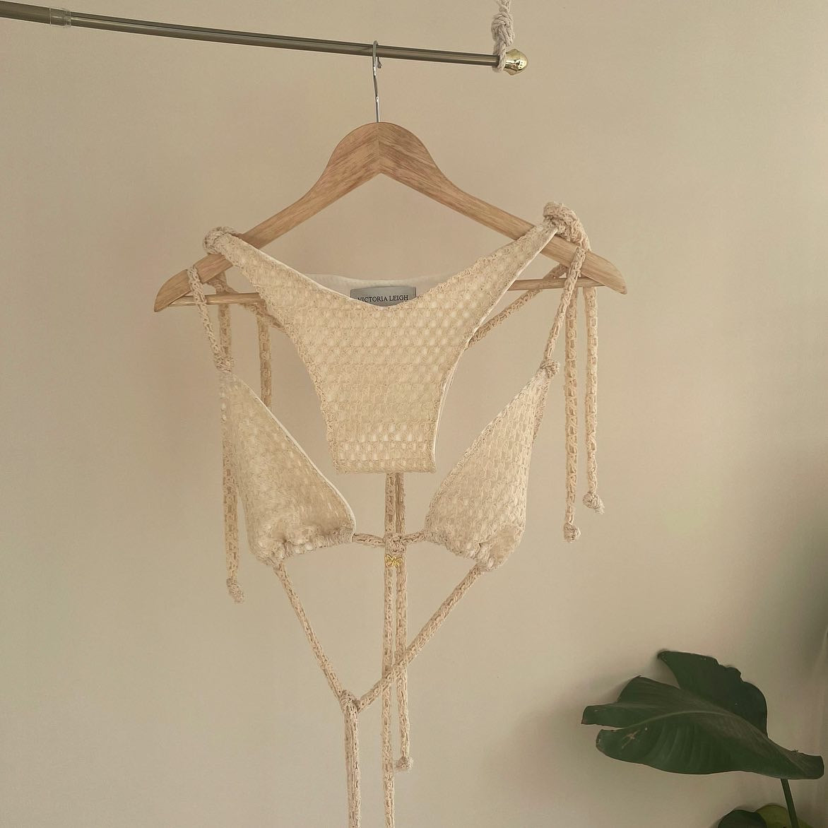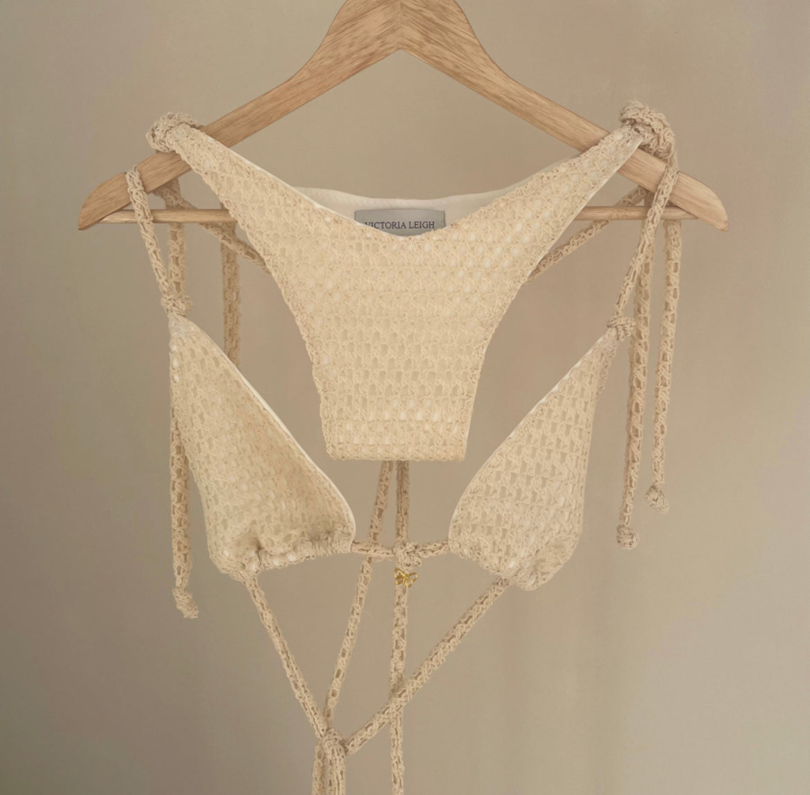 Made to order. Comes with the VL gold butterfly embellishment in the centre of the top and at the rear of bikini bottoms.