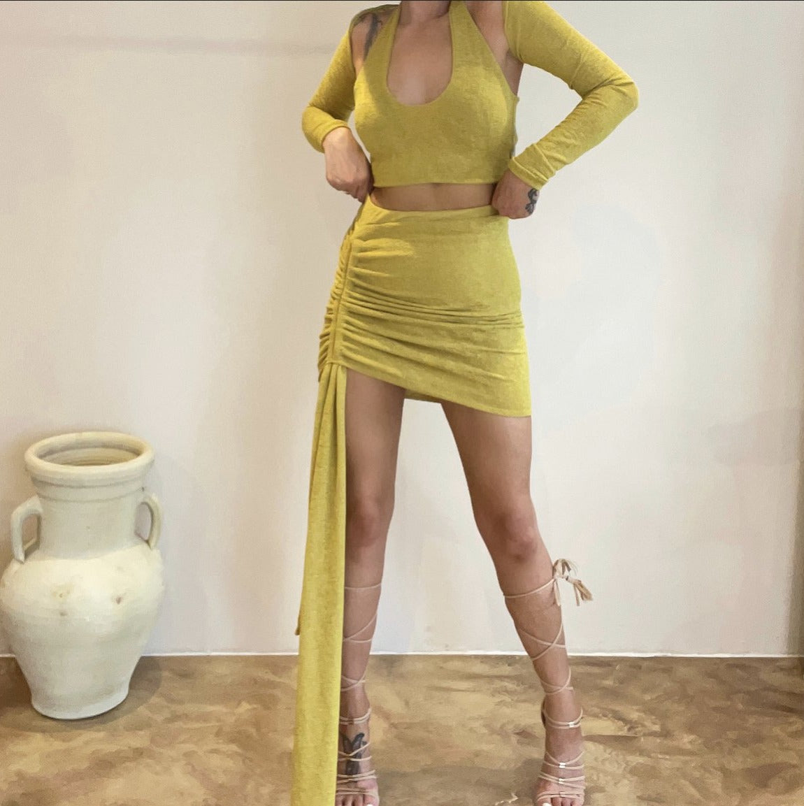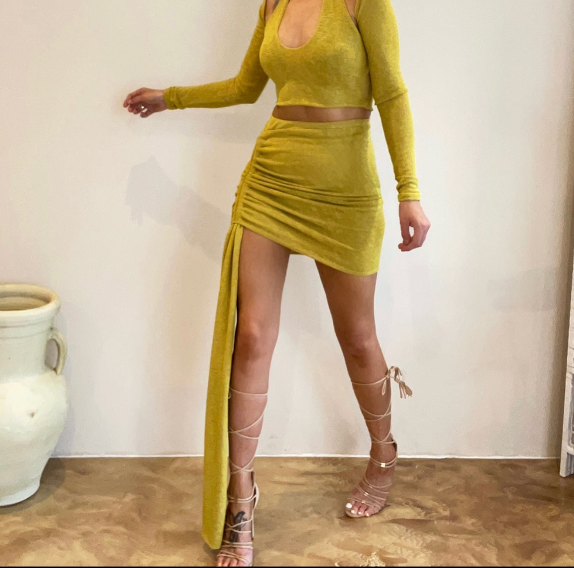 MODEL WEARS: Chartreuse stretch Knit . Size 10